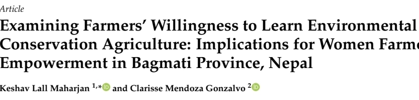 Examining Farmers’ Willingness to Learn Environmental Conservation Agriculture: Implications for Women Farmer Empowerment in Bagmati Province, Nepal21 دسامبر 2025 - 10:05 ب.ظ